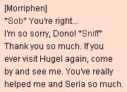 | 08. Return back to Morriphen. He'll tell you the story between him, Dono and Siria and give you 700,000 base Exp for helping him. | |